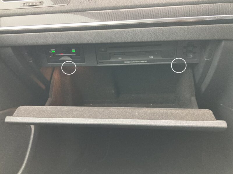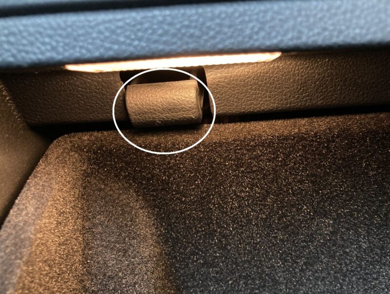 左右2か所を何とか押し込みグローブボックスを下に下げます。
