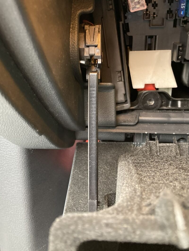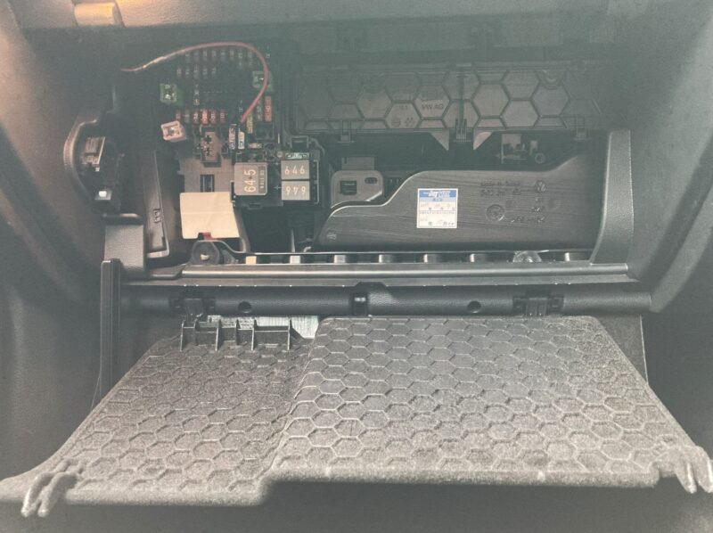 グローブボックスを外すとヒューズボックスとエアコンフィルターのボックスが見えます。
