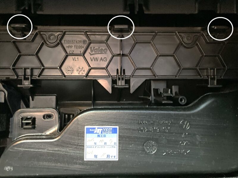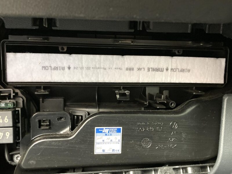エアコンフィルターは助手席前方のグローブボックスの後ろにあります。