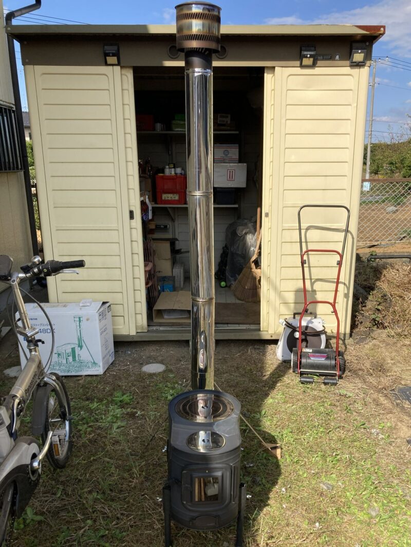 ストーブの近くは暖かく、この冬は庭でハッピーに作業できそうです。