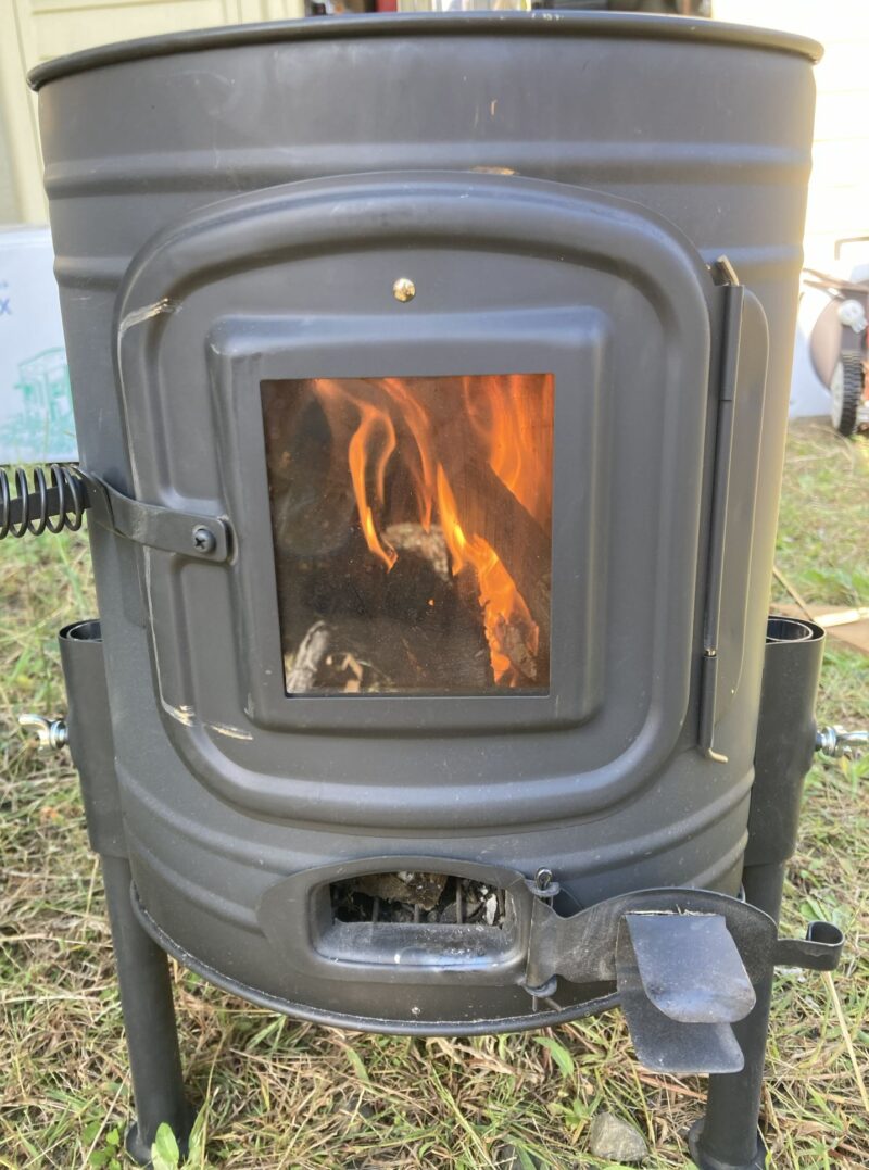 扉を閉じて少し待っていると本格的に薪に火が付き、炎が窓から見えます。