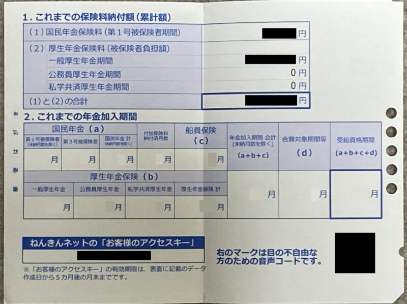 年金保険料納付額が記載されていますので、今までいくら払っているか確認できます。