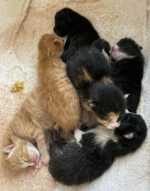 7月に家の中で野良猫が子猫を6匹出産し、びっくりするやら大慌てするやらでした。