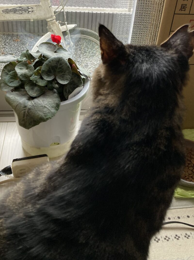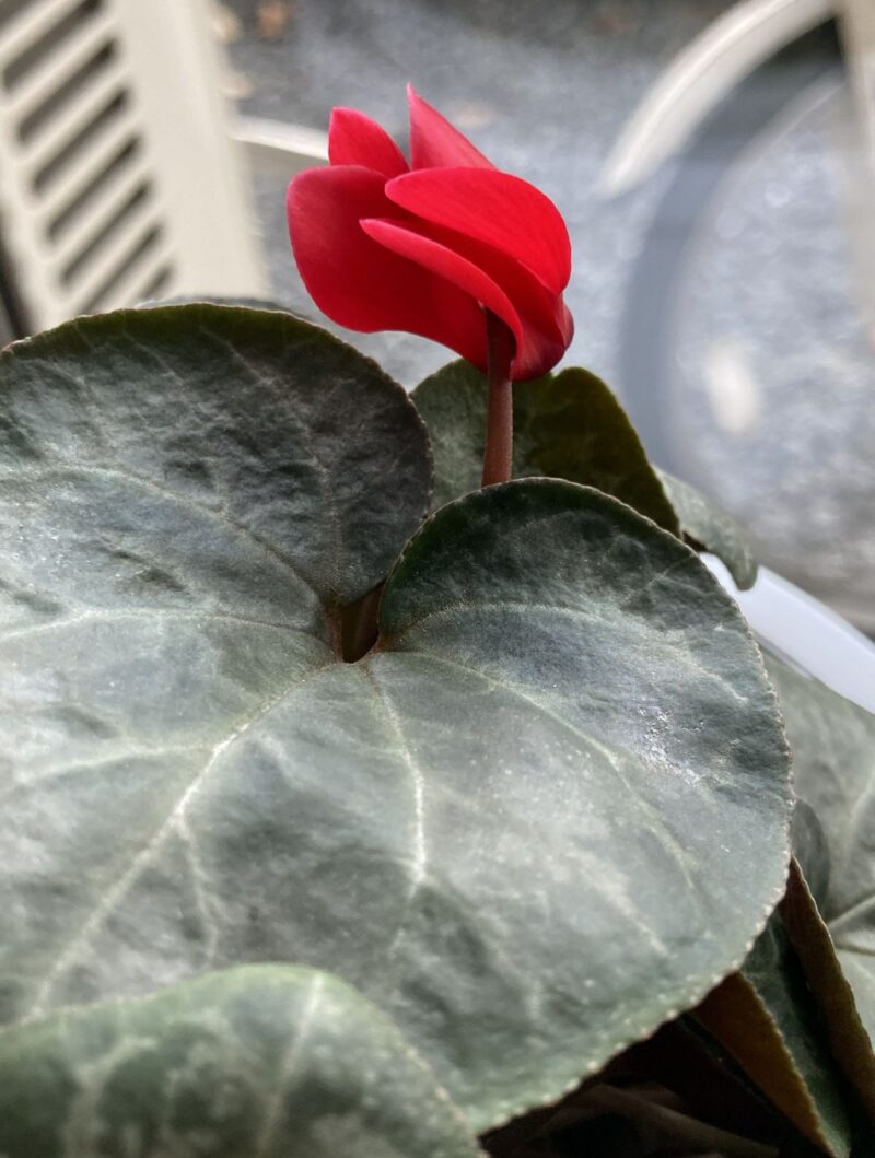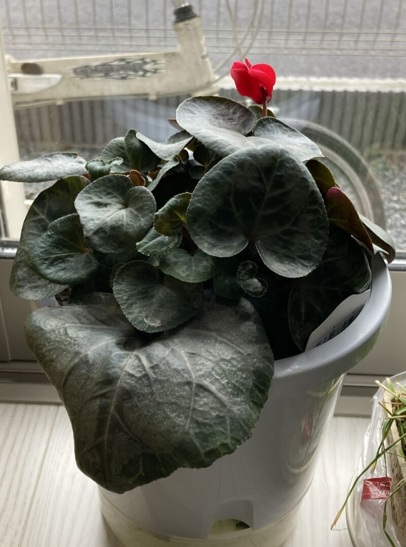 昨年夏越しに成功したシクラメンにようやく花が咲きました。