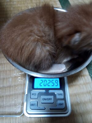 1日あたり15g〜20gほど体重が増え、1週間で約200gと、ほぼ2倍になりました。