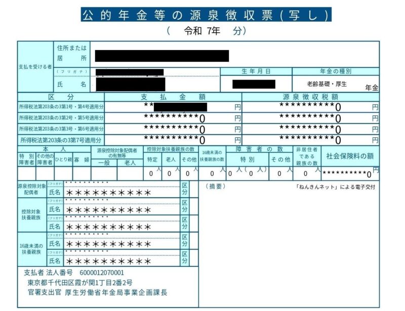 公的年金等の源泉徴収票 マネー X Facebook はてブ Pocket LINE コピー 2026.01.18 日本年金機構からから公的年金等の源泉徴収票(はがき)が届きました。ねんきんねっとからダウンロードもしました。 https://www.nenkin.go.jp/oshirase/taisetu/2025/202512/1223.html 年金の収入と会社からの給与収入があり、それぞれから源泉徴収票が発行されています。会社の給与からは、源泉徴収されていますが、年金の方からは、源泉徴収をされていないので確定申告をしますが、年金からは税金が引かれていないので、追加で税金を支払うことになるかも….. 申告によって還付金が返ってくるようになれば、ハッピーです。 俺たち(猫)の医療費も医療控除にしてくれるのか
