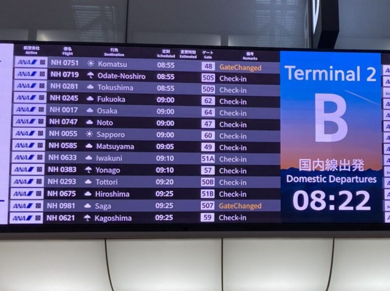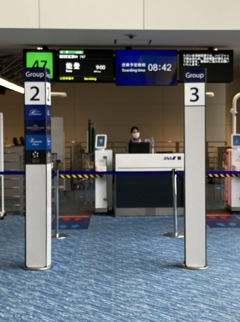 羽田空港から出発時刻9:00のANA747で能登里山空港へフライトです。